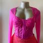Fuchsia pink red top and a white tropical floral print bottom bikini set