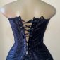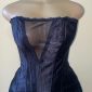 Black strapless top is a fashionable corset-style bustier featuring mesh panels and structured boning.