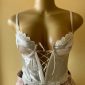 Fuchsia pink red top and a white tropical floral print bottom bikini set