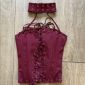 Burgundy-colored lace-up corset top